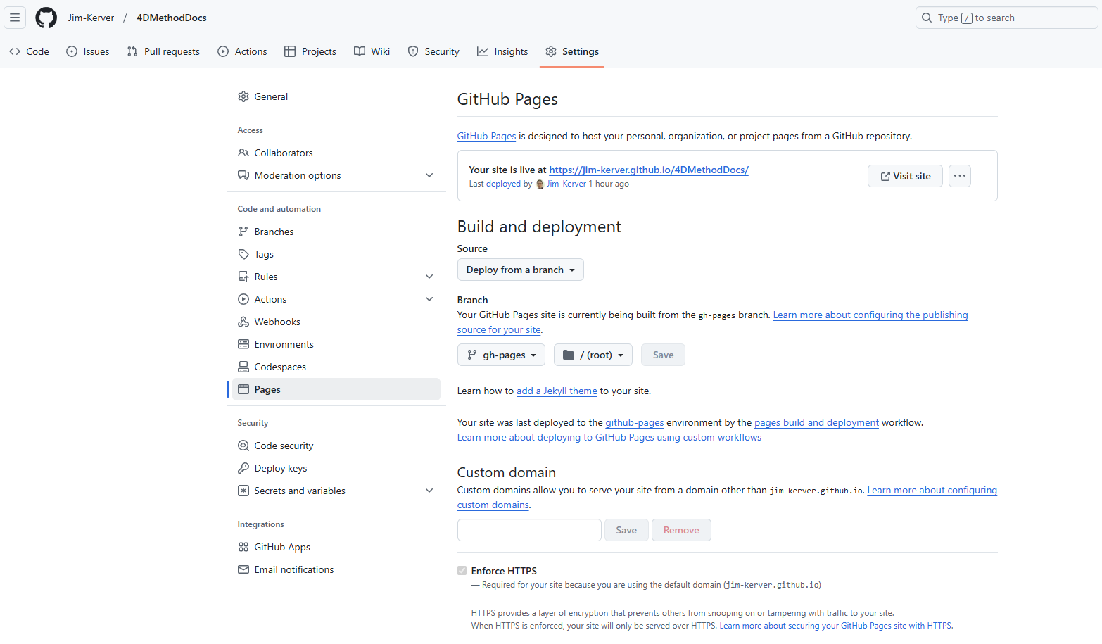 GitHub Pages settings